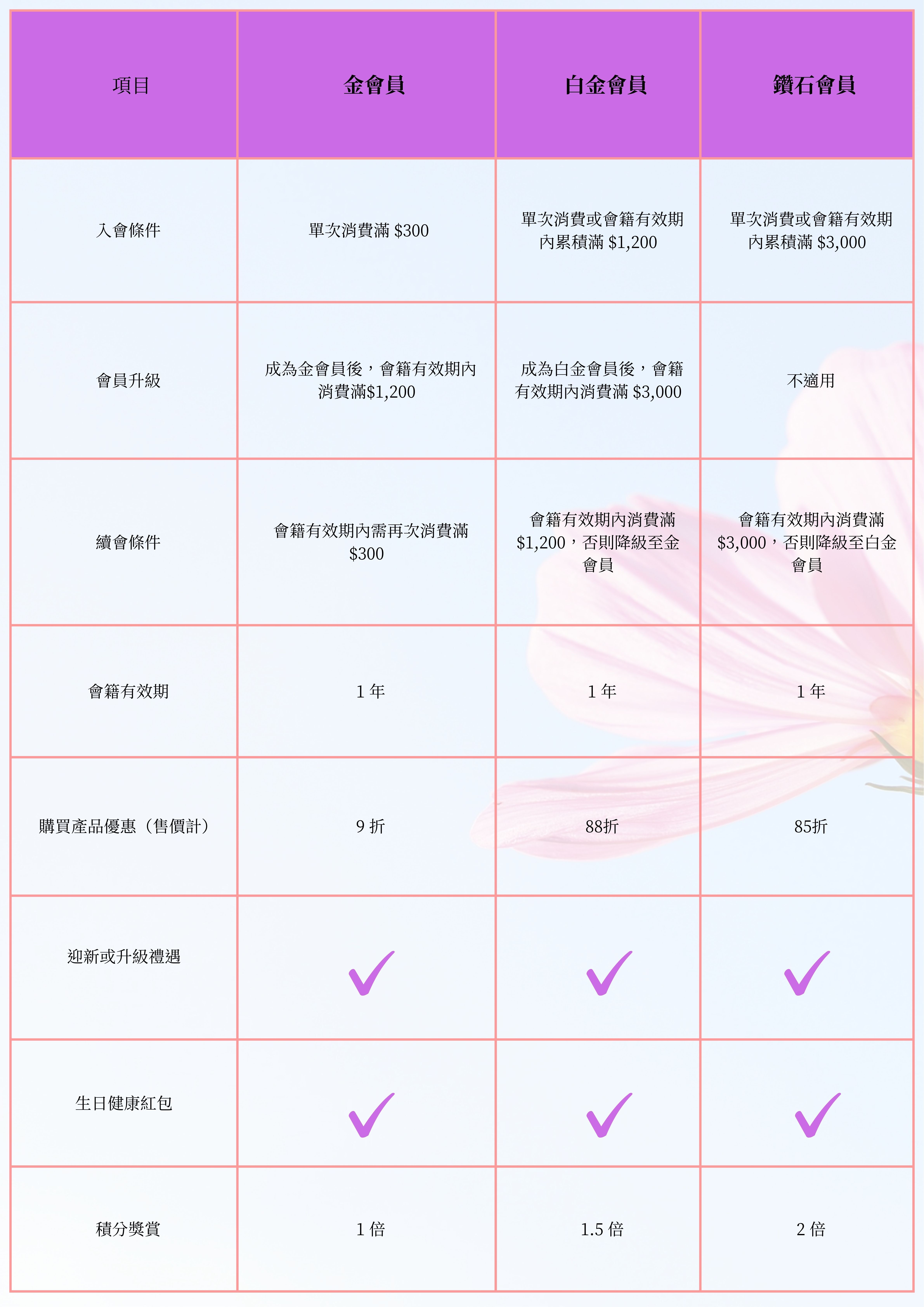 *注意:當顧客訂單被轉為已完成後,系統將於隔日凌晨依照升級條件計算會員等級。